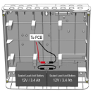 Depending on panel load and standby requirements, two 12 volt sealed lead acid batteries (max 3.4Ah) may be fitted in the housing. The batteries should be wired in series (24V) using the supplied link-wire. Take care not to short circuit the battery terminals.