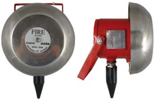 The Zeta flame proof gong bell is an explosion proof gong bell with a terminal chamber. A highly reliable electric circuit is housed inside to control the frequency of the gong operating spindle. The operating spindle and dish are made out of stainless steel thereby ensuring a long life. The electric circuits are connected to terminals in the terminal chamber through nipple. The covers are provided with neoprene gaskets for weatherproof protection.