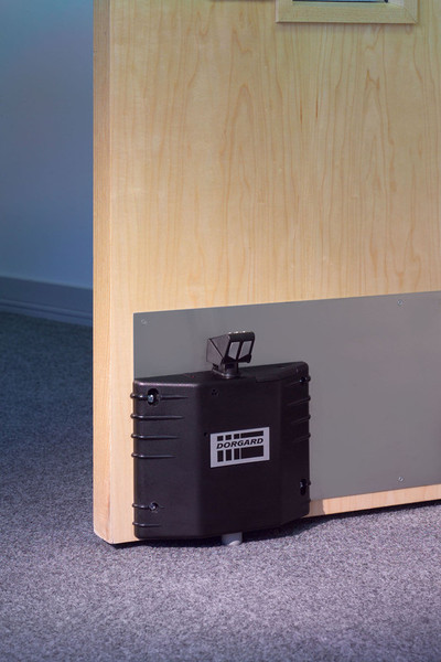 Dorgard is a device designed to safely hold open a fire door and automatically release it upon the sound of a fire alarm. It can be used to hold the fire door open in any position.