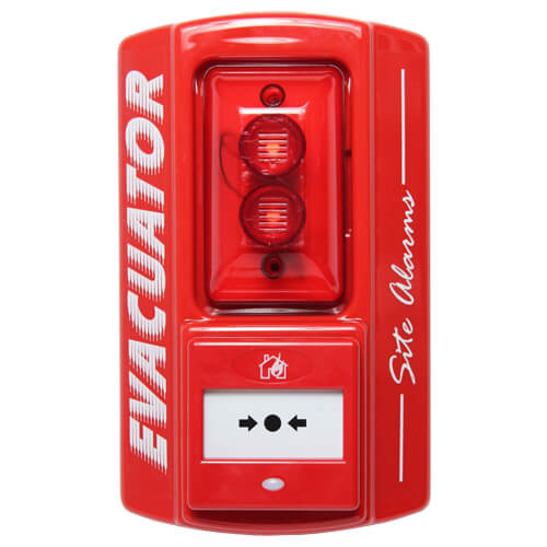 The Evacuator Site Master alarm is available with a choice of push button or break glass activation. The push button version features a simple push on, twist off push button whilst the break glass features a manual call point which activates the sounder. The alarm sounds at an extremely loud 110dB which is audible from great distances.