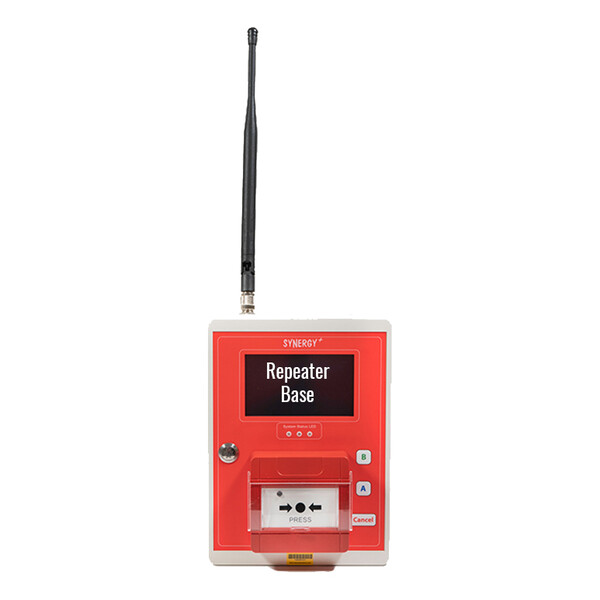 The Evacuator Synergy+ Repeater Panel is a mains-powered safety device with a clear screen, advanced radio connectivity, and compliance with industry standards for effective emergency communication.