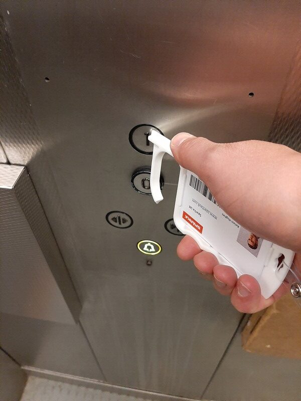 The KROK Door Opener is designed for operating doors (both push and pull), lift buttons, car-park barriers, keypads, and various other touch points without direct hand contact.