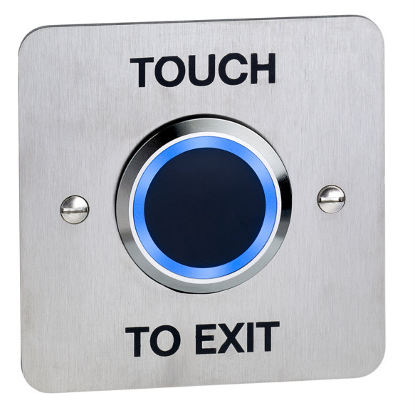 This narrow style exit button has a touchless proximity sensor, activated by close proximity of the hand. No need to touch making it ideal for clean environments.