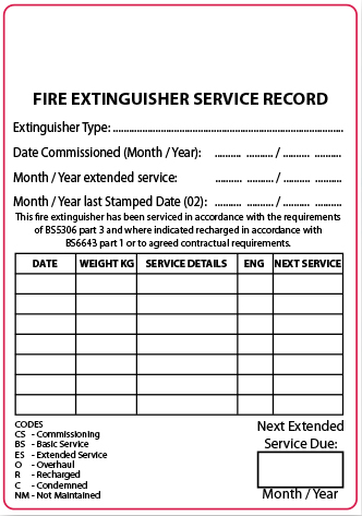 Plain (un-branded) extingsuiher service labels measuring 70x100mm printed on self-adhesive tear & waterproof paper. Not these labels can be written on in normal biro pens.