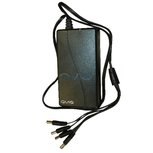 A plug in 5 amp, 12 volt power supply and 4 camera adapter to provide power. 5 amps provides plenty of power for larger cameras with more powerful Infra-red illumination and easily copes with less demanding cameras such as the internal domes or smaller day/night products.