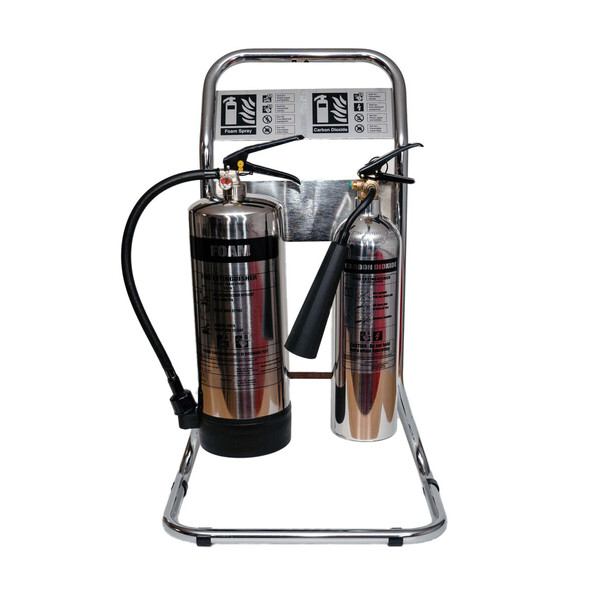 The FESTAND stands include a number of pre-drilled holes which will allow the corresponding extinguisher bracket(s) to be fixed. These brackets are not included with these stands however all extinguishers we supply come complete with the appropriate bracket.