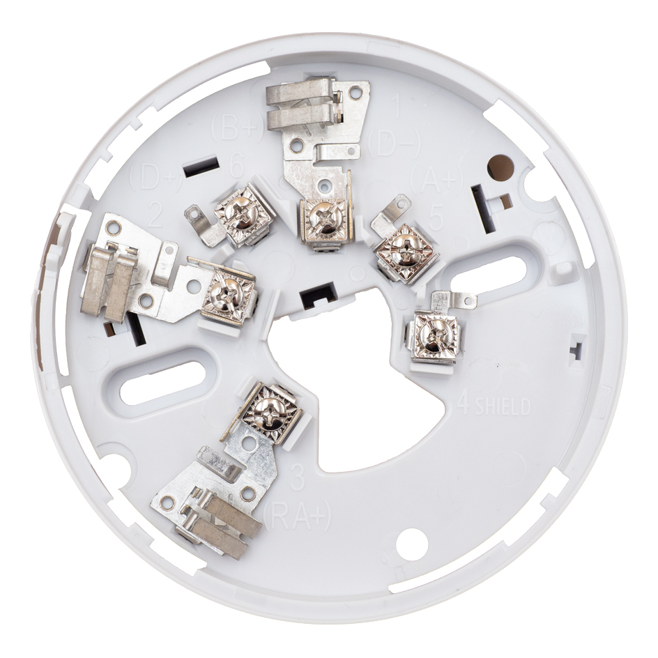 The System Sensor B524IRFT-1 isolator base prevents an entire communications loop from being disabled when a short circuit occurs. It achieves this by isolating the part of the loop containing the short circuit from the remainder of the circuit. The base will automatically restore the entire loop when the short circuit is corrected. Up to 20 devices may be isolated per isolator base depending on the device type.