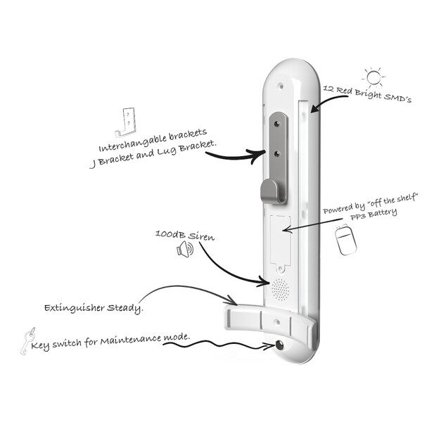 The distinctive Piezo siren boasts a loud 100dB output, which serves as both a deterrent to potential vandals and a recognisable alert tone to the responsible person on site. The high volume signal can be instantly silenced by receipt of the missing extinguisher or the master key located on the bottom of the unit.